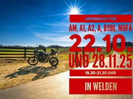 Der klassenspezifische Zweiradunterricht findet am 26.11. von 18.30-21.30 Uhr in Welden statt.